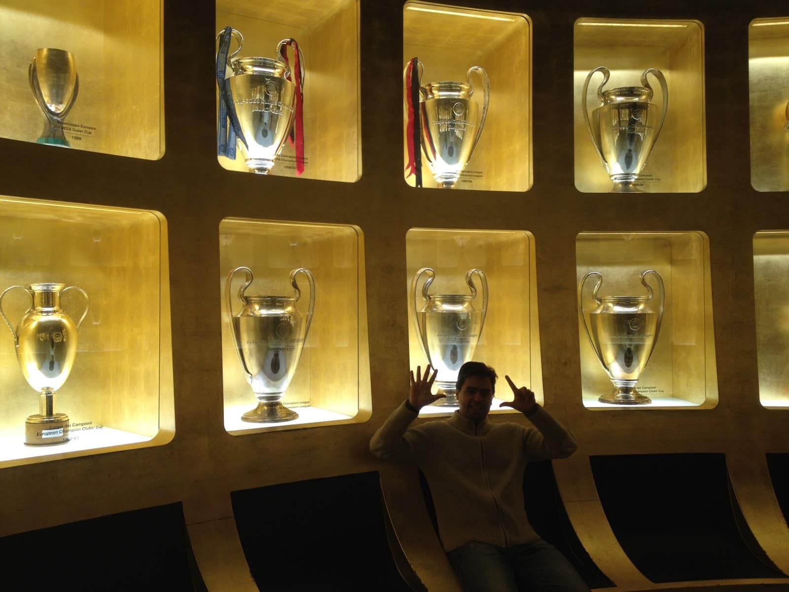 Ardından bizi geleceğin yıldızları diye bir bölüm karşılasa da haliyle Milan’ın şu an içinde bulunduğu durumu göz önüne alırsak burası müzenin en sönük kısmı kalıyor. Düşünün ki zamanında bu kadar yılın futbolcusu çıkartan kulüp, Delofeu’yü kiraladığına sevinecek duruma gelmiş. Bu küçük ve önemsiz bölümü hızlıca geçtikten sonra bizi Şampiyonlar Ligi müziği eşliğinde büyük bir salon karşılıyor. Haliyle 7 defa bu kupayı kazanınca kendini Şampiyonlar Ligi ile özdeşleştirebiliyorsun. Burada şampiyonluk formalarından, kazanan takımların formalarına kadar birçok ayrıntı mevcut. milan kupa