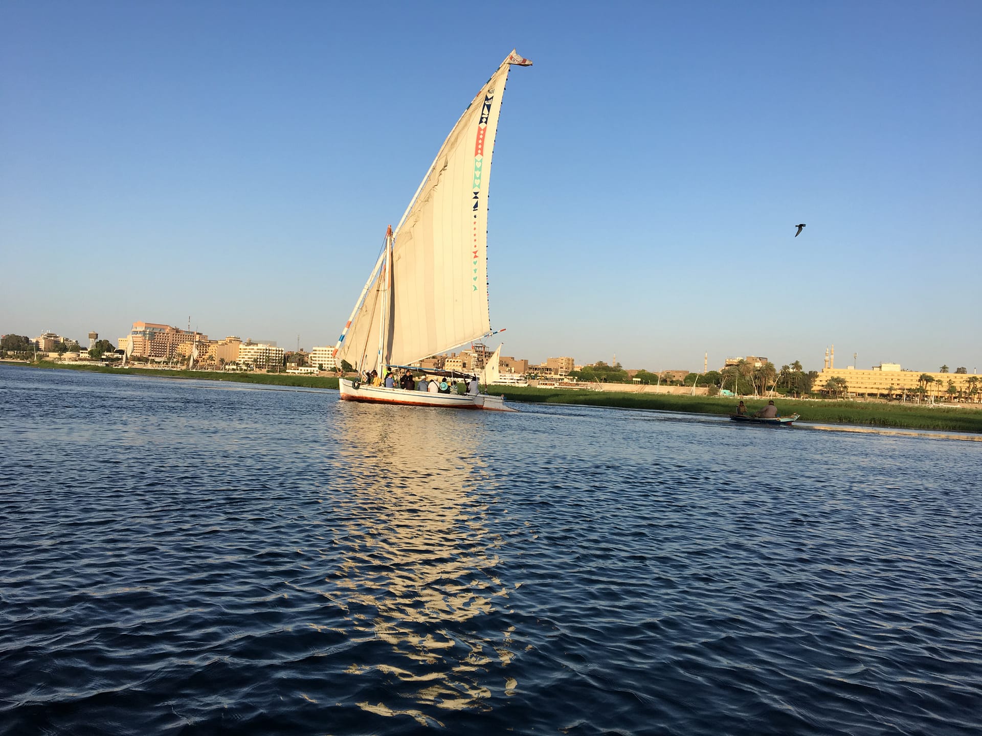 Nil’in iki yakasını bağlayan köprü şehrin yaklaşık yarım saat dışında bulunuyor. Bu yüzden basit bir tekneyle öteki tarafa geçiyoruz. Nehrin üstünde Cruiselar var. Bunlar Aswan’dan başlayıp Kahire’ye kadar yolculuk ediyorlar. Tam da gün batımında Nil’in üzerindeki tekneler oldukça fotoğraflık kareler sunarken bizim de adı Arapça mücevher anlamına gelen bu şehirden ayrılma vaktimiz geliyor.